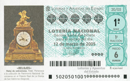 Reloj de sobremesa. Ridel. Pertenece a la colección de Patrimonio Nacional. Se conserva en el Palacio Real de La Granja de San Ildefonso, (Segovia). Relojes, 12 de marzo de 2005. |