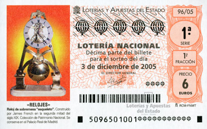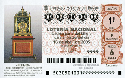 Reloj esqueleto. Manuel Gutiérrez. Último tercio del siglo XVIII. Pertenece a la colección de Patrimonio Nacional. Palacio Real de Madrid. Relojes, 16 de abril de 2005. |