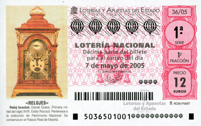 Reloj bracket. Daniel Quare. Primer mitad del siglo XVIII. Estilo Rococó. Pertenece a la colección de Patrimonio Nacional. Se conserva en el Palacio Real de Madrid. Relojes, 7 de mayo de 2005 |