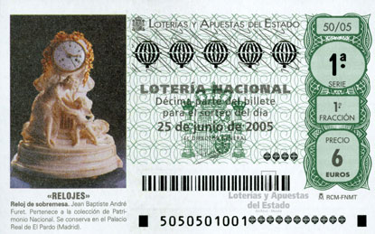 Reloj sobremesa. Jean Baptiste André Furet. Pertenece a la colección de Patrimonio Nacional. Se conserva en el Palacio Real de El Pardo (Madrid). Relojes, 25 de junio de 2005. |