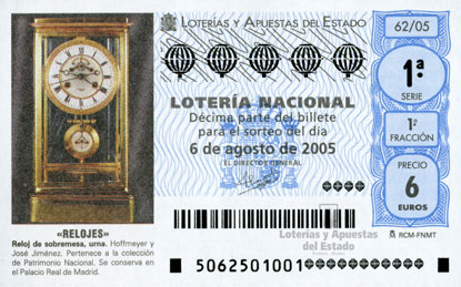 Reloj sobremesa, urna. Hoffmeyer y José Jiménez. Pertenece a la colección de Patrimonio Nacional. Se conserva en el Palacio Real de Madrid. Relojes, 6 de agosto de 2005. |