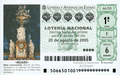 Reloj monumental. Manuel de Rivas. Pertenece a la colección de Patrimonio Nacional. Se conserva en el Palacio Real de Madrid. Relojes, 20 de agosto de 2005. |