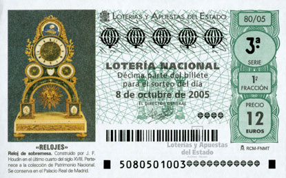 Reloj de sobremesa. Construido por J.F. Houdin en el último cuarto del siglo XVIII. Pertenece a la colección de Patrimonio Nacional. Se conserva en el Palacio Real de Madrid. Relojes, 8 de octubre de 2005. |
