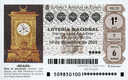 Reloj de sobremesa. Abraham Louis Breguet. Año 1850. Pertenece a la colección de Patrimonio Nacional. Se conserva en el Palacio Real de Madrid. Relojes, 10 de diciembre de 2005. |